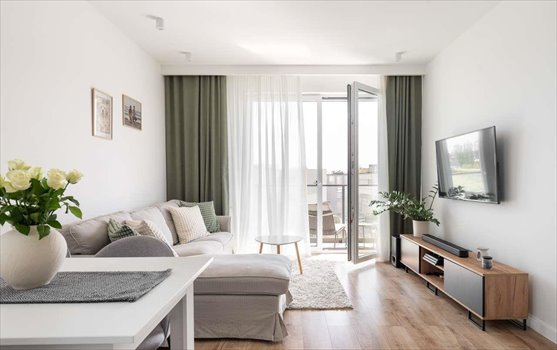 - przestronny salon z aneksem kuchennym (ok. 22 m²) i wyjściem na balkon,