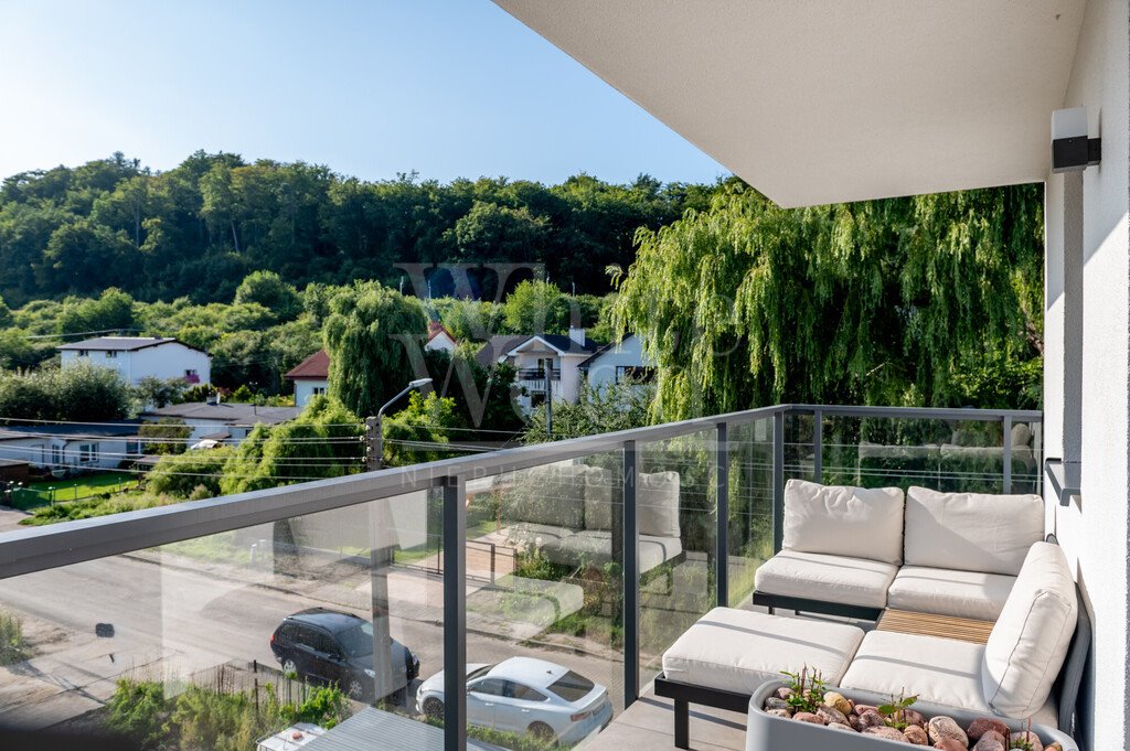 - Balkon z ekspozycją zachodnią pozwala cieszyć się popołudniowym słońcem i relaksem wśród zieleni.