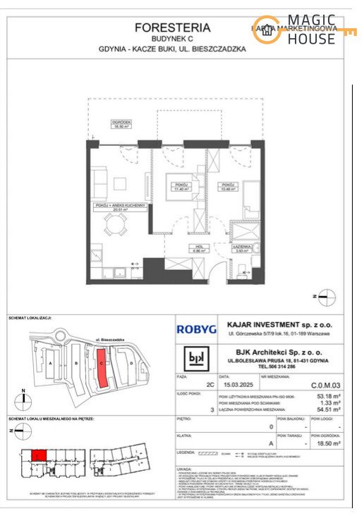 Nowoczesne 3-pokojowe mieszkanie w zielonym osiedlu Gdynia, Wielki Kack, Bieszczadzka - 53,18m2