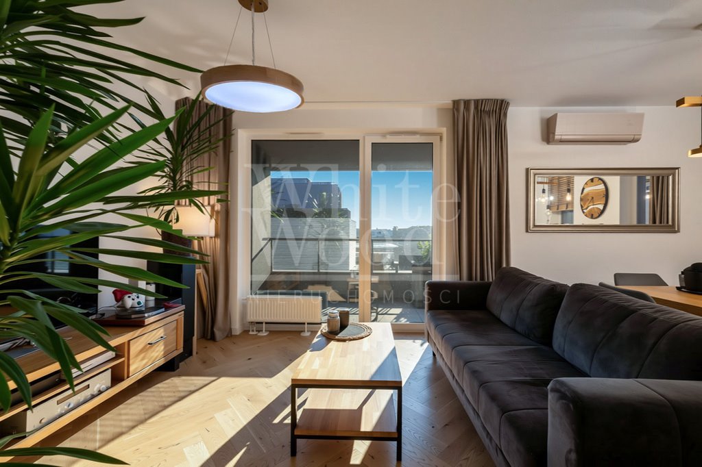 - wysoki standard wykończenia: drewniane podłogi, starannie dobrane materiały wykończeniowe, zabudowy stolarskie,