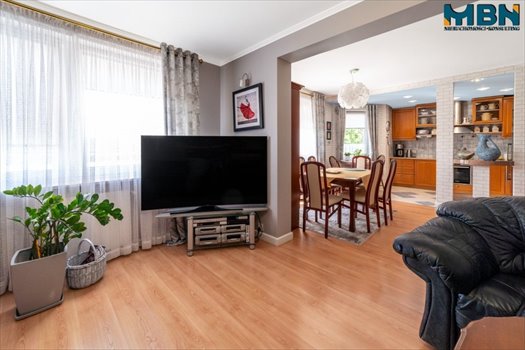 Kuchnia otwarta o pow. ok. 8m2, połączona z salonem o pow. ok. 16m2 i jadalnią o pow. ok. 11,5m2 (umeblowana zabudową na wymiar oraz wyposażona w sprzęt AGD - ceramiczną płytę indukcyjną, piekarnik elektryczny, okap pod kominowy, lodówkę z zamrażarką, zlewozmywak), z jadalni wyjście na balkon;