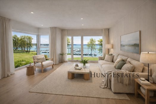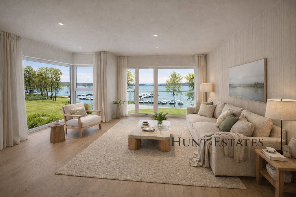 - przestronny salon z aneksem kuchennym i wyjściem na balkon z widokiem na jezioro