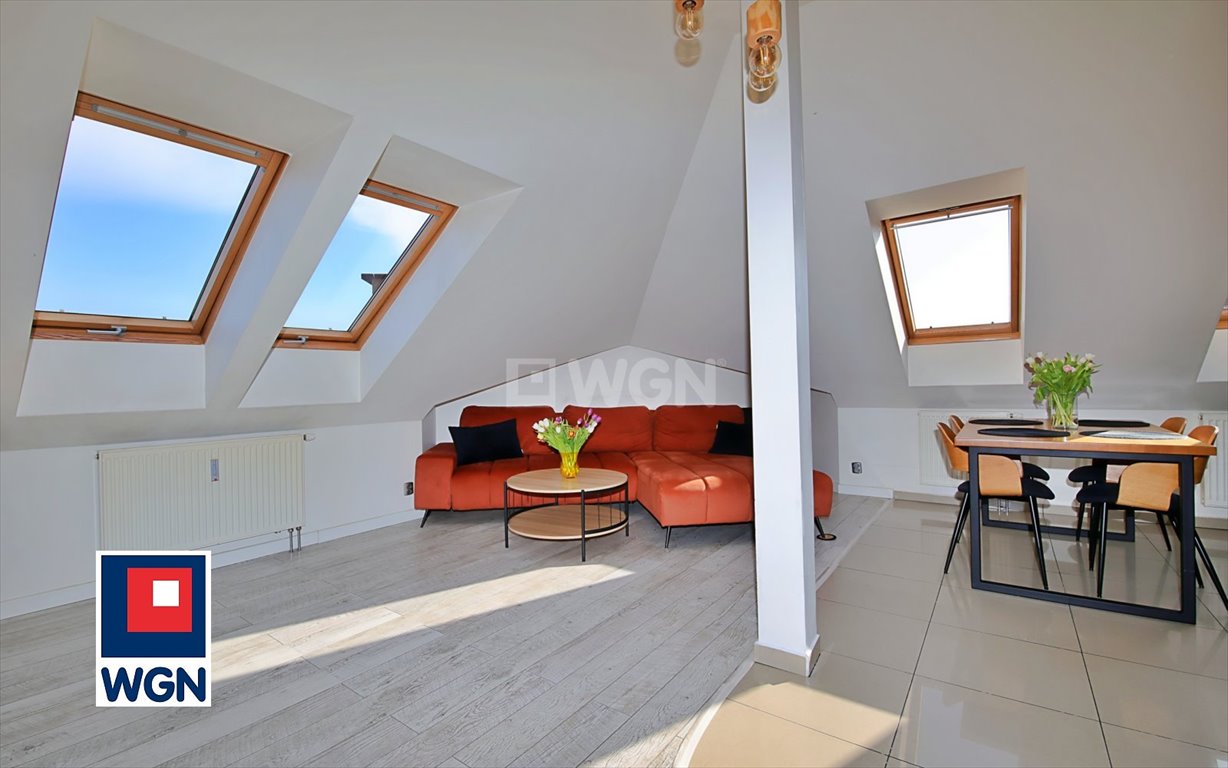 Powierzchnia użytkowa mieszkania wynosi 46,60 m2, natomiast powierzchnia liczona po podłodze (ze względu na skosy) to aż 75,38 m2, dzięki czemu przestrzeń jest znacznie większa i bardzo funkcjonalna. Ponadto, dzięki temu mieszkanie oferuje znacznie większą przestrzeń przy opłatach liczonych jedynie od 46 m2.