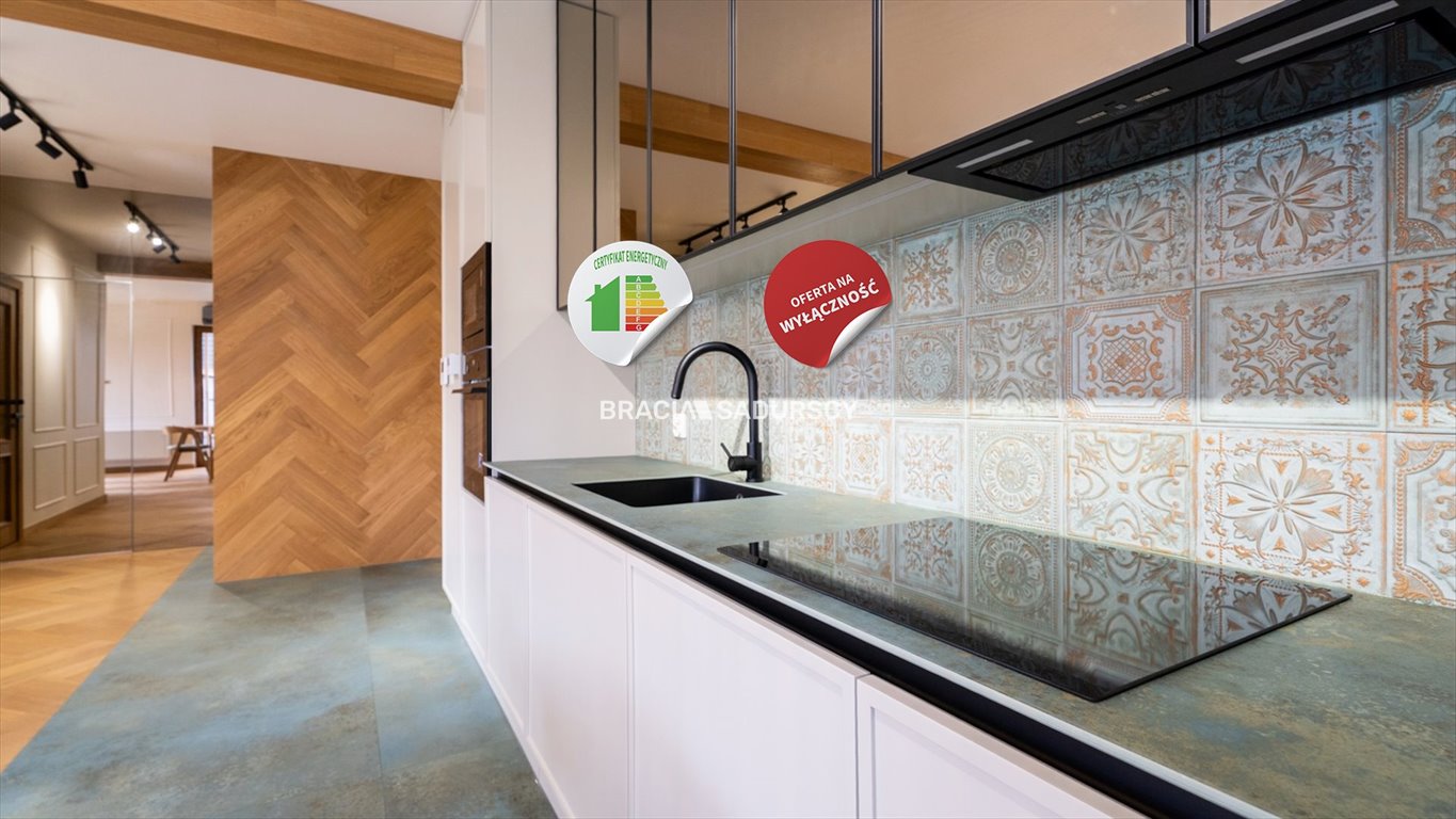 Mieszkanie składa się obszernego salonu z aneksem kuchenny, dwóch sypialni oraz łazienki. Wykończenie na najwyższym jakościowym poziomie. Podłogi pokryte dębową deską berlinecką oraz wielkogabarytowymi panelami ze spieków. Ściany lokalu wykończone gładzią gipsową, taflami spieku oraz luster z dodatkami deski berlineckiej. Wysokiej jakości meble kuchenne oraz szafy łazienkowe dodają szyku i niezwykłego wyglądu a wszystko wykończone lustrami, spiekami oraz elementami lakierowanymi . Kuchnia wyposażona w sprzęt AGD firmy Elektrolux (piekarnik, płyta indukcyjna, zmywarka, mikrofalówka), pochłaniacz - Kernau, lodówka - Libherr. W salonie znajdziemy szafkę pod TV, stół z krzesłami i kanapę. Wszystkie pomieszczenia zostały wyposażone w gustowne oświetlenie. Dodatkowy wpływ na nietuzinkowość ma wysokość mieszkania 2,73 m oraz okna o wysokości 2,30 m.