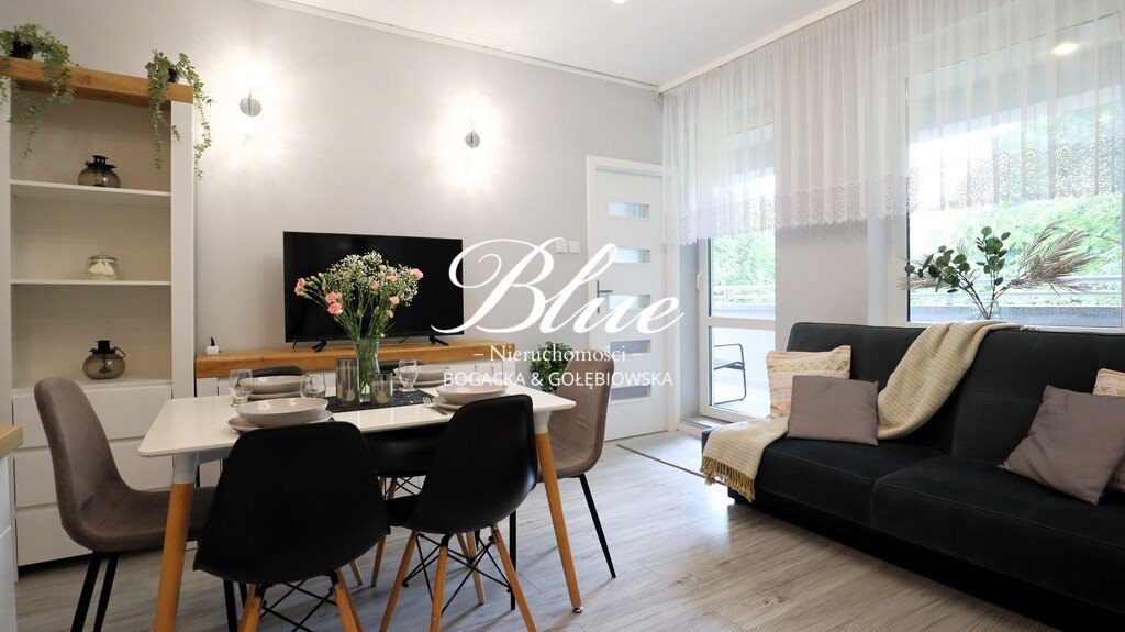 Wnętrze zostało urządzone w nowoczesnym stylu, z dbałością o komfort i wygodę. Apartament sprzedawany jest z pełnym wyposażeniem, dzięki czemu jest gotowy do zamieszkania od zaraz lub wynajmu.