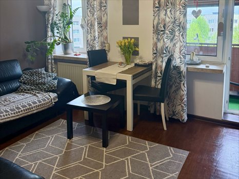 Mieszkanie składa się z trzech ustawnych pokoi, kuchni, łazienki oraz przedpokoju. Na podłogach drewno oraz płytki. Lokal jest sprzedawany z pełnym wyposażeniem, co czyni go idealnym wyborem dla osób chcących wprowadzić się bez konieczności remontu.