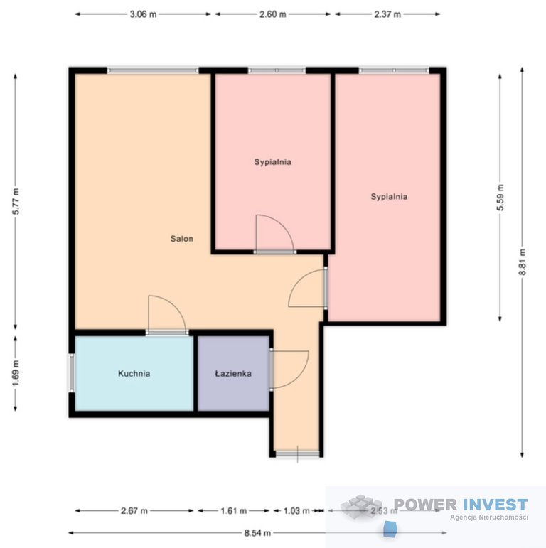 -3 pokoje z otwartą kuchnią.