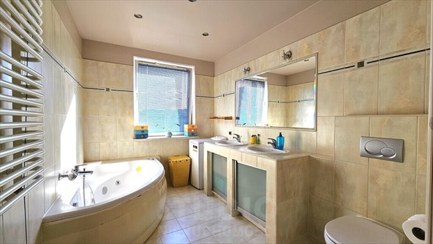- ŁAZIENKA - pow. 6,7 m2, wanna narożna, dwie umywalki w zabudowie, WC, pomieszczenie z oknem