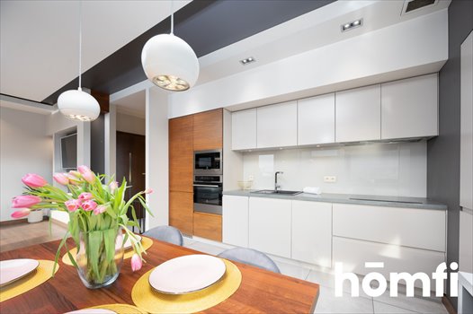 Aneks kuchenny jest w pełnej zabudowie, zaprojektowany z myślą o funkcjonalności i estetyce. Kuchnia jest w wyposażona we wszystkie niezbędne sprzęty AGD, które pozostają w mieszkaniu, co czyni ofertę gotową do zamieszkania bez dodatkowych nakładów finansowych. Cała przestrzeń dzienna jest klimatyzowana, doskonale doświetlona dużymi przeszkleniami i niezwykle komfortowa w codziennym użytkowaniu.