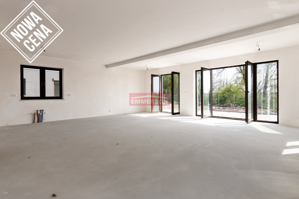Z uwagi na ukształtowanie terenu, od strony ogrodu, przyziemie znajduje się na wysokości parteru.
