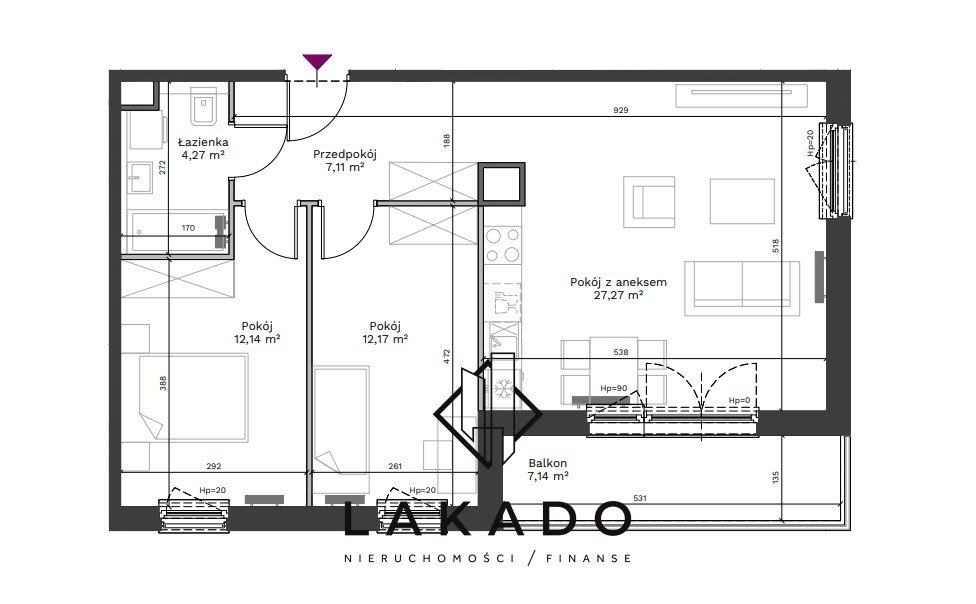 Do mieszkania przynależy balkon 7,14m2