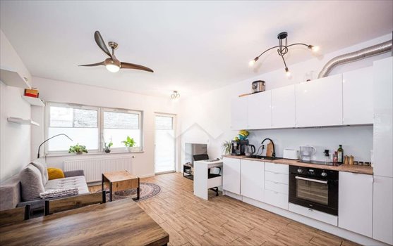 Stan mieszkania: bardzo dobry, gotowy do zamieszkania. Na podłodze płytki, w łazience położona glazura. W salonie znajduje się kanapa, sześcioosobowy stół jadalniany, przestrzeń do pracy przy biurku oraz telewizor. Wyjście do przynależnego ogrodu, w którym za parawanami znajduje się prywatne jacuzzi. Aneks kuchenny w zabudowie, w pełni wyposażony: płyta indukcyjna z piekarnikiem i okapem oraz lodówka. Łazienka z prysznicem i pralką. Dwa osobne pokoje, z czego jeden może pełnić funkcję biura lub dużej garderoby. Ogrzewanie i ciepła woda z sieci miejskiej.