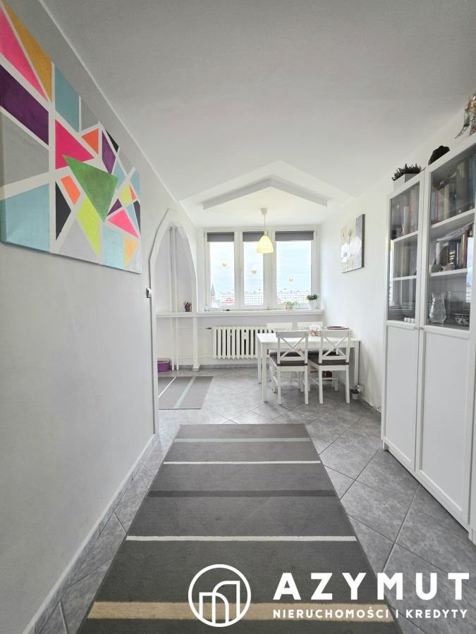 Mieszkanie pierwotnie trzypokojowe zostało przearanżowane w taki sposób, aby uzyskać przestronny salon oraz sypialnię. Kuchnia została połączona z jednym z pokoi, tworząc funkcjonalną przestrzeń kuchni z jadalnią. Istnieje możliwość łatwego przywrócenia pierwotnego układu - salon można podzielić na dwie niezależne sypialnie, dzięki czemu mieszkanie może oferować trzy sypialnie oraz kuchnię połączoną z salonem.Mieszkanie znajduje się na 8 piętrze. Budynek 10 piętrowy. Oferowana nieruchomość ogrzewana jest: c.o. z sieci miejskiej. Standard wykończenia: dobry.