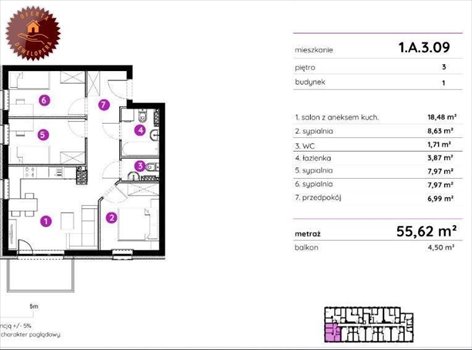 - Powierzchnia całkowita55,62 m2