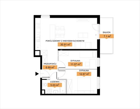 Powierzchnia użytkowa lokalu: 66,37 m2 + duży balkon 7,1 m2