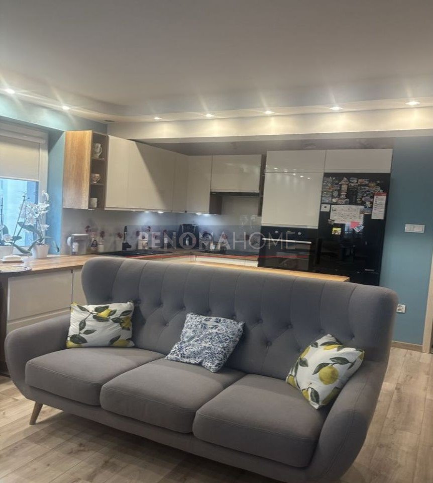 - Salon z aneksem kuchennym oraz wyjściem na duży balkon,