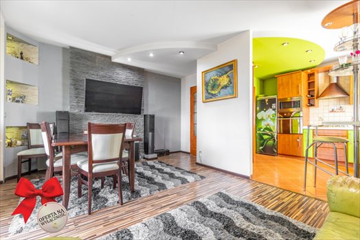 - Pokój dzienny z balkonem ( oszklonym ) z kuchnią otwartą ( możliwość oddzielenia )