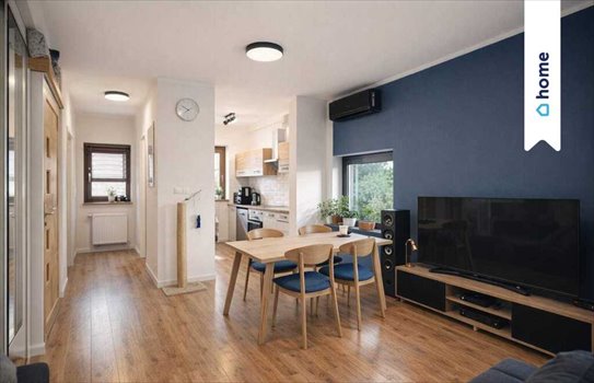 To mieszkanie daje poczucie domu — wyraźny podział stref, wygodna przestrzeń do życia i niskie koszty utrzymania.