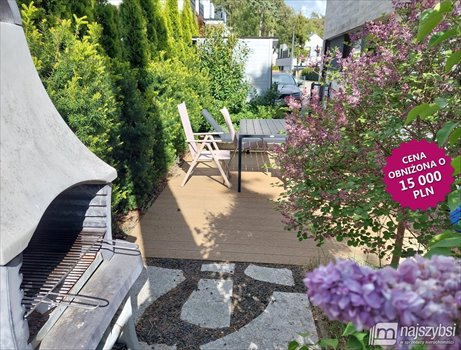 Składająca się on z 2 sypialni, dużego salonu z aneksem kuchennym, łazienki z prysznicem, balkonu, ogrodu z grillem i domkiem na rowery.