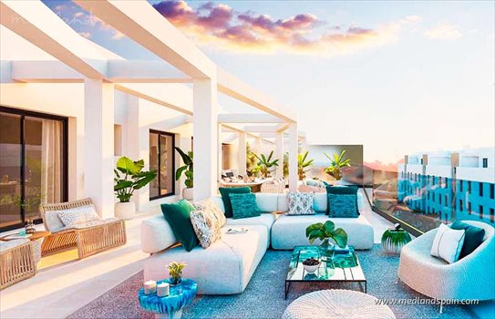 Residential complex of modern apartments in Las Lagunas de Mijas. A fast-expanding area, next to a future hospital, and only a few minutes’ walk from a commercial area with shops. A prime location on the Costa del Sol, between Marbella and Malaga, and very close to Fuengirola city centre and marina. There are also numerous golf courses in the surrounding area, like La Cala Golf and Chaparral Golf Club, various hiking trails, and water activities at the beaches, which are only 6 minutes from the complex. The AP-7 and A-7 motorways make it easy to reach other important tourist areas, like La Cala de Mijas, as well as the town of Mijas, in 12 minutes, Puerto Banús in 30 minutes, Marbella and Malaga international airport in 25 minutes.The complex comprises apartments with 1, 2 and 3 bedrooms, and are available in different models: ground and mid-floor models with a terrace; and penthouses with 3 bedrooms with various terraces. All apartments present an open plan, lounge, dining area and kitchen, with large windows in the lounge that open onto the terrace. The master bedroom, in all models, has a private bathroom and dressing room, and access to a terrace.These modern apartments include a fully equipped kitchen with white goods, fully installed ducted A/C in the lounge and bedrooms, underfloor heating in the bathrooms, video intercom, a storage room, and a parking space with pre-installation for a charging station for electric cars.The complex is completely closed and includes various common areas, a pool, large gardens, a children's play area, a gym, and a sauna.