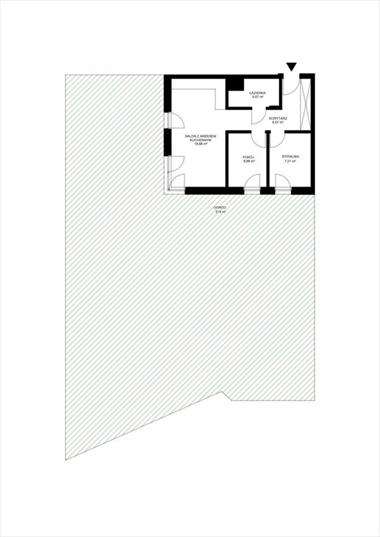 - dwóch sypialni 6,66 oraz 7,21 mkw.