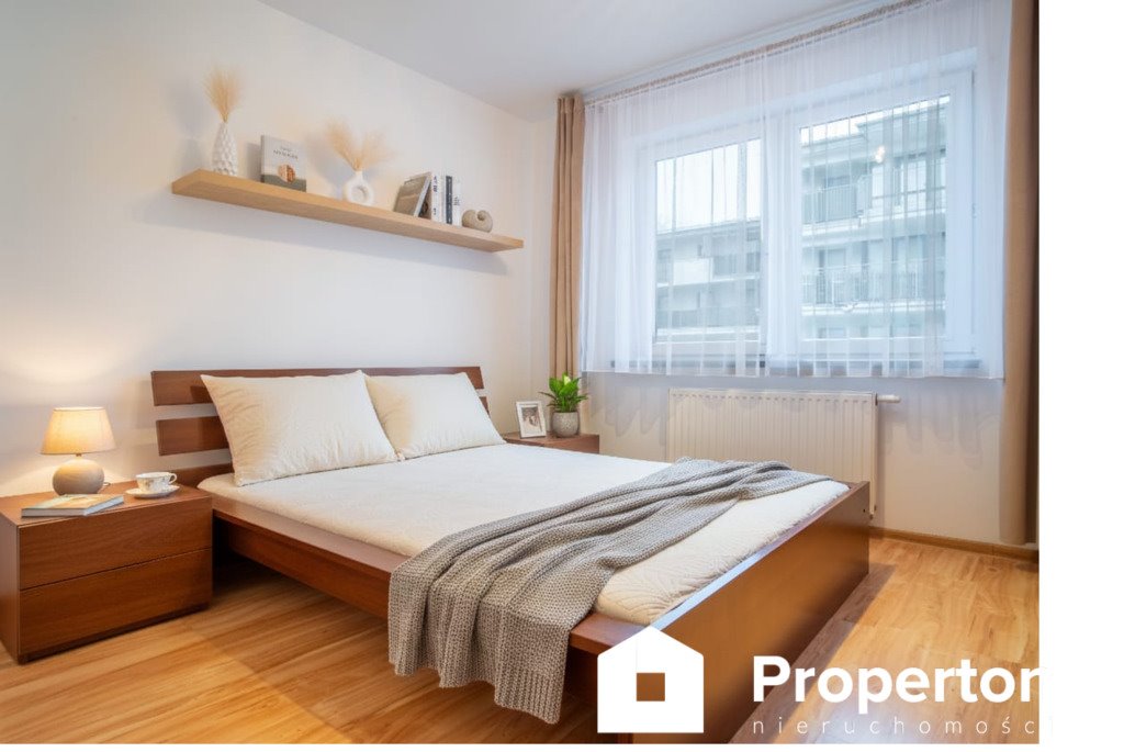 Na podłogach znajdują się panele, a mieszkanie wyposażone jest w drzwi antywłamaniowe. Teren osiedla jest ogrodzony i monitorowany, a wszystkie media są miejskie, w tym ciepła woda. W cenie mieszkania pozostaje całe wyposażenie widoczne na zdjęciach. Miejsca parkingowe ogólnodostępne przez blokiem.