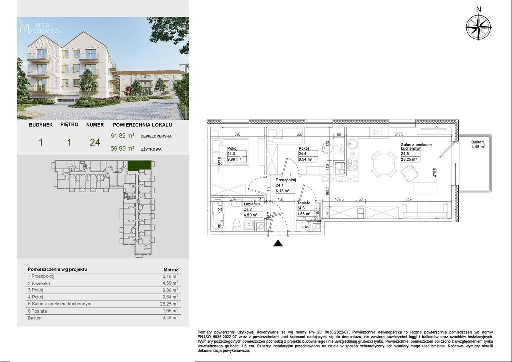 Przestronne 3-pokojowe mieszkanie w Osielsku, 60 m² Osielsko, Aleja Adama Mickiewicza - 59,99m2