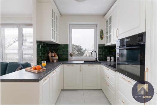 - nowoczesna kuchnia z oknem wyposażona w wysokiej klasy sprzęt AGD (niektóre z nich na gwarancji), oraz liczne szafki do przechowywania,