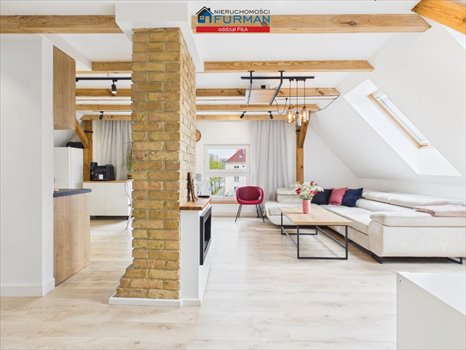 Lokal składa się z przestronnego salonu z w pełni wyposażonym aneksem kuchennym oraz dwóch niezależnych sypialni znajdujących się na piętrze, co zapewnia komfort, spokój i intymność domownikom.