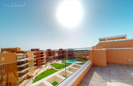 Exclusive residential complex in Pilar de la Horadada, the southernmost town of the Costa Blanca. The town offers a blend of traditional Spanish charm and modern amenities, like supermarkets, shops, bars, restaurants, and leisure activities.Outdoor enthusiasts are spoiled for choice with 4 prestigious golf courses close by, a municipal sports complex, and beautiful beaches and marinas in the coastal area of Torre de la Horadada.Travel throughout the Costa Blanca and Costa Cálida is quick and convenient, thanks to the excellent road network. Murcia airport is only 40 minutes away, with Alicante airport aprox. An hour away.Designed for luxury and comfort, the complex features homes with 3 bedrooms, spacious living areas, and large outdoor spaces, all in a sunny environment with 300+ days of sunshine a year. The homes are available in different models: Ground floor apartments with a garden, ideal for those wanting extra outdoor spaceMid-floor apartments with a terrace, ensuring a private outdoor experiencePenthouses with private solarium, perfect for enjoying the sunshine all year ‘roundTerraced villas on two floors, garden and private solarium, perfect for larger familiesThe heart of the complex encompasses a central, beautifully landscaped area with 2 large pools for adults and children, Mediterranean gardens and relaxation areas, as well as a children’s playground. There is an underground parking garage for the homes without a parking space on the premises.Designed with modern finishes and high-quality materials, the homes include pre-installation for ducted A/C, fitted wardrobes, and a parking space. Depending on the stage of construction, these homes can be customised to suit any taste from a choice of options.Experience the best of Mediterranean living in a secure environment, close to the beach, and a variety of amenities.