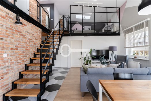 A unique, two-level loft with an area of 100 m², located on the top, third floor of an intimate building in a gated community on Mogileńska Street in Poznań. The space, designed and implemented under the supervision of Shoko Design, combines a modern loft character with the cozy warmth of natural materials. Restored brick walls, steel woodwork in a loft style