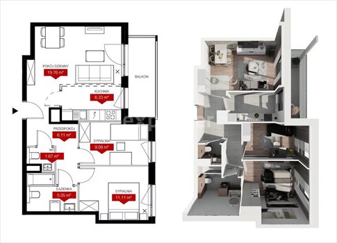 lub POKÓJ Z ANEKSEM 26,09 m2