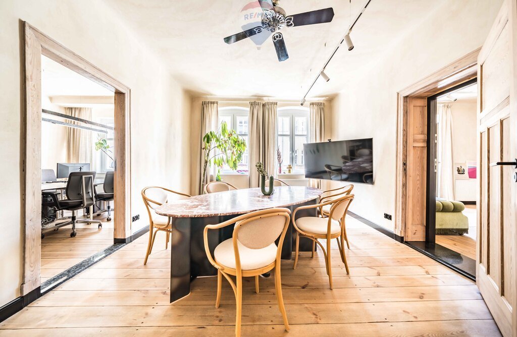 To mieszkanie to połączenie stylu, funkcjonalności i klimatu dawnej architektury, idealne dla pary, rodziny lub osób pracujących zdalnie, które cenią przestrzeń z charakterem.