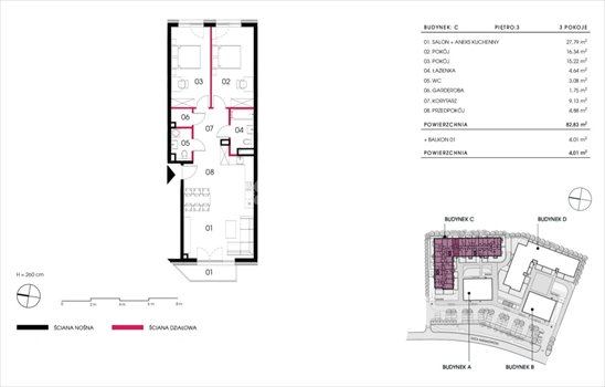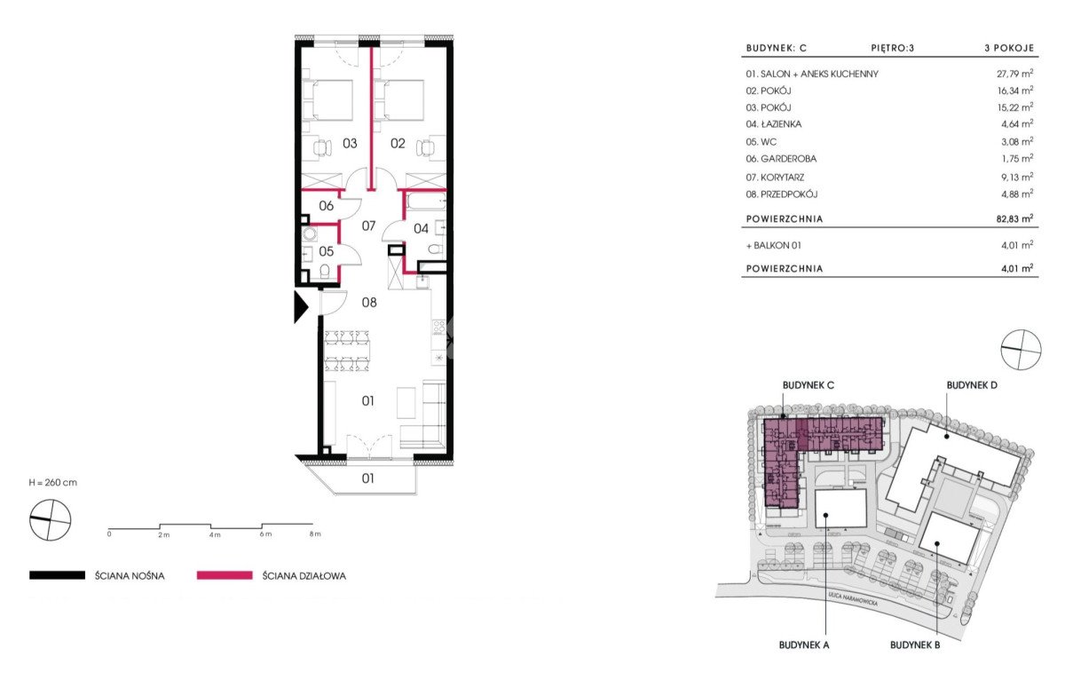 Mieszkanie trzypokojowe na sprzedaż Poznań, Naramowice, Naramowicka - 82,83m2