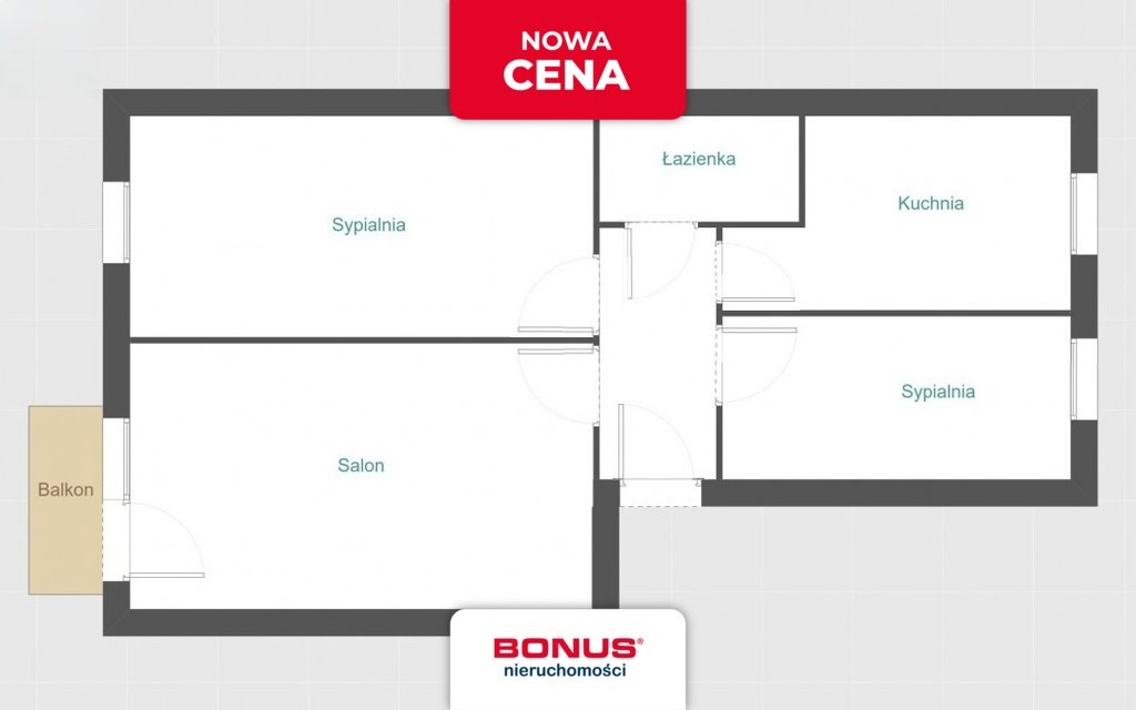 3-pokojowe mieszkanie na Winogradach z balkonem i piwnicą Poznań, Winogrady, Winogrady, os. Przyjaźni - 47,6m2