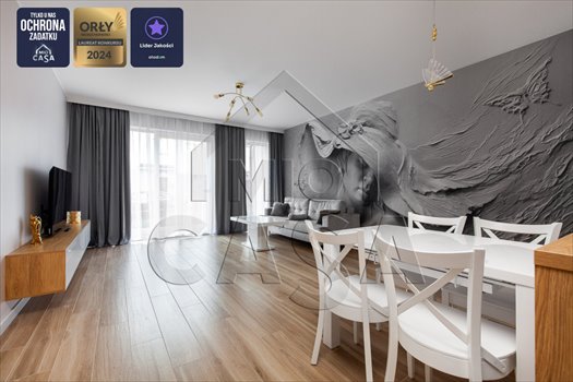- Centralną część mieszkania stanowi rzadko spotykany przestrony salon z aneksem kuchennym o powierzchni aż 44,25 m², z bezpośrednim wyjściem na ogródek. Cała zabudowa Kuchenna została wykonana na wymiar z materiałów Egger i systemami Blum. Wyposażono ją w sprzęt Electrolux, lodówkę Whirlpool oraz rozkładany stół z krzesłami. W salonie znajduje się wygodna, rozkładana sofa oraz telewizor Xiaomi 55” 4K.