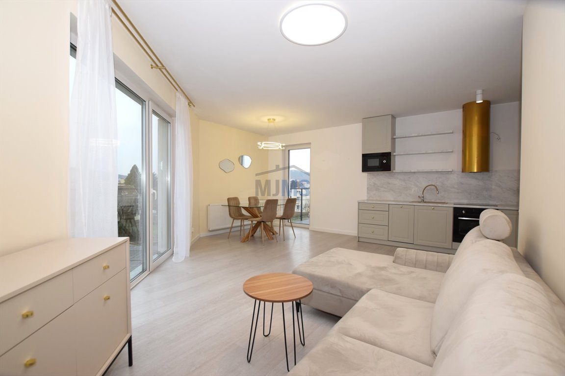 przestronny salon z aneksem kuchennym oraz jadalnią , z wyjściem na dwa balkony , idealny do relaksu i spotkań z rodziną lub znajomymi,