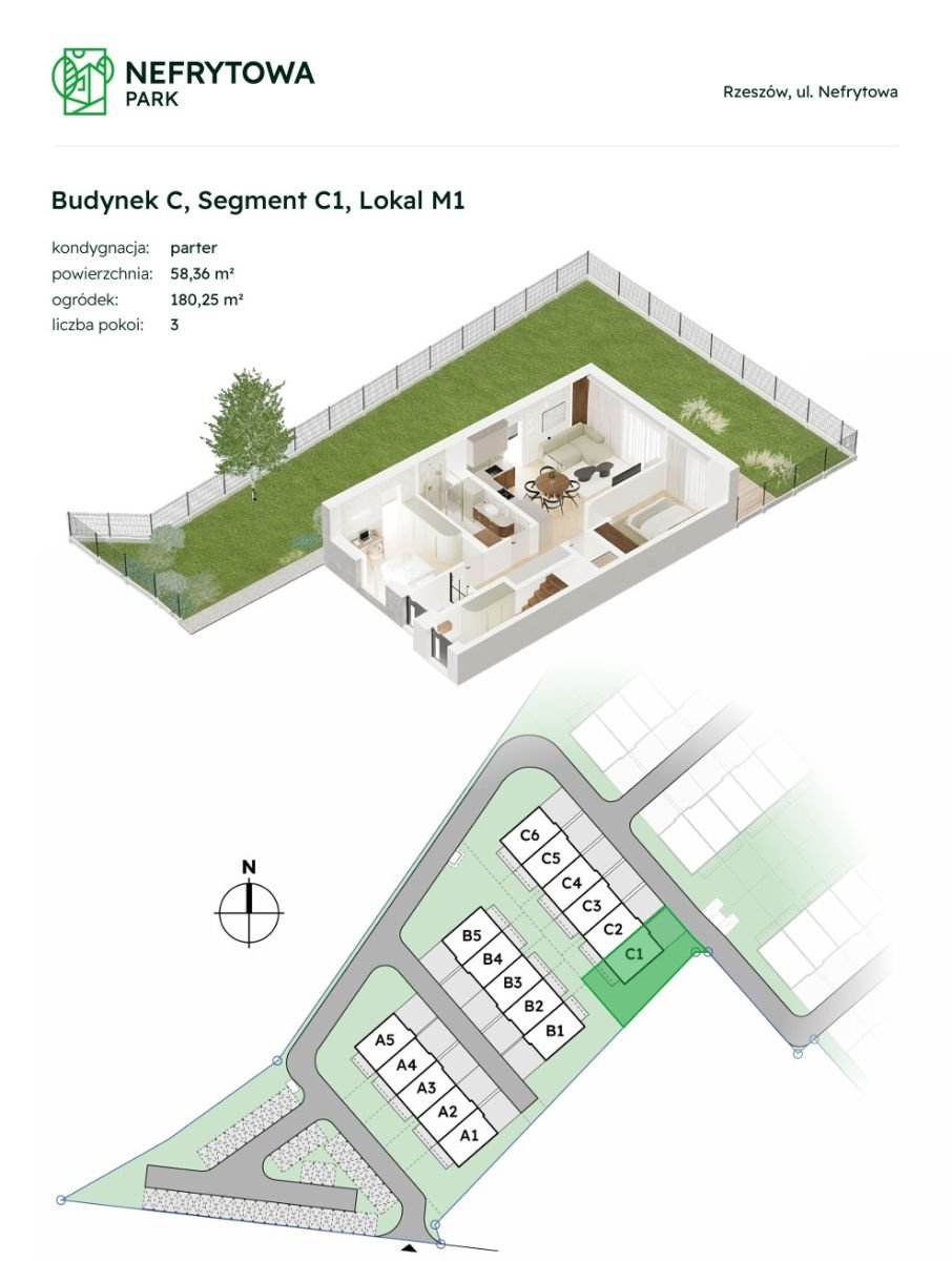OFERTA DOTYCZY MIESZKANIA NA PARTERZE O POWIERZCHNI 58,36 M2 Z PRYWATNYM SKRAJNYM OGRODEM O POWIERZCHNI180 M2.