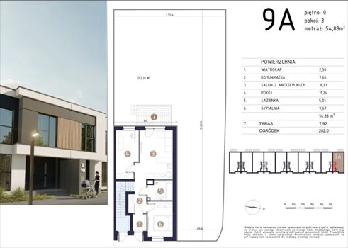- mieszkanie o powierzchni: 54,88m2