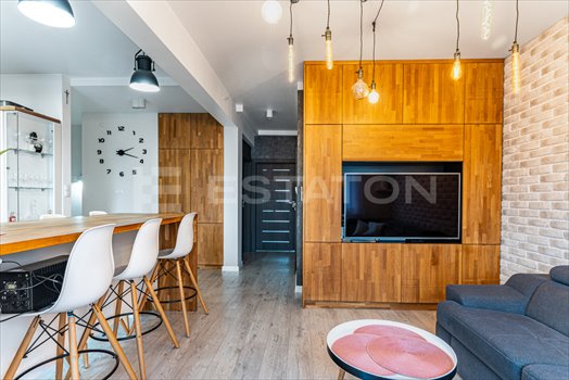 - Salon z aneksem kuchennym z wyjściem na balkon i taras