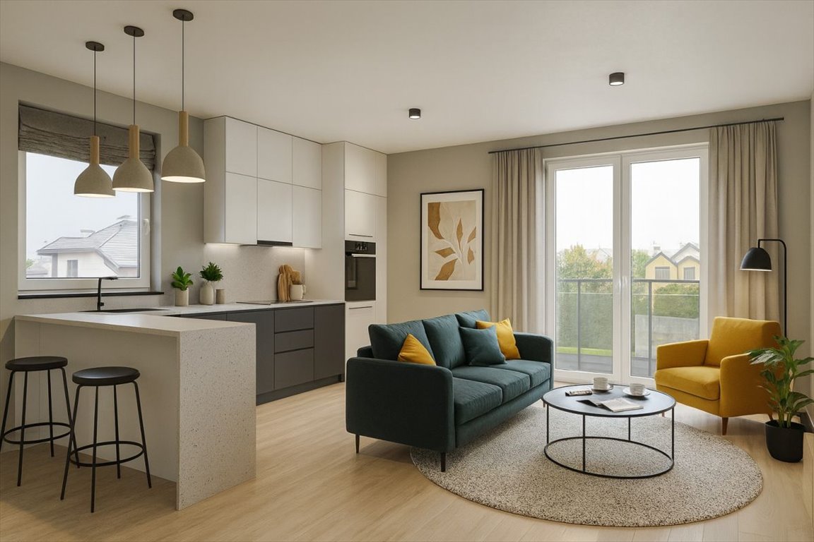 - Funkcjonalny układ - przestronny salon z aneksem kuchennym,