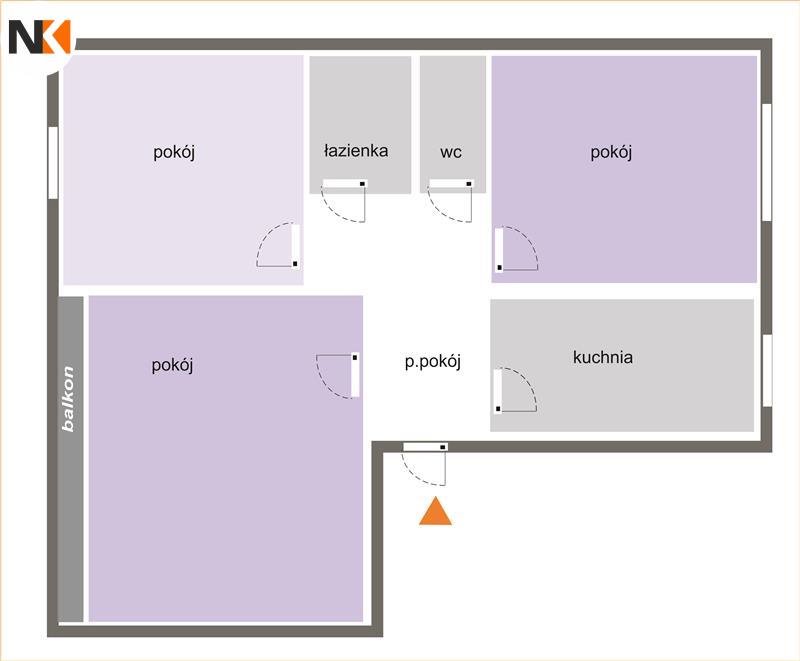 Trzypokojowe mieszkanie o powierzchni 59,5 mkw, na 2 piętrze w wieżowcu na Os. Niepodległości ul. Romera; Do mieszkania wejście z klatki schodowej;