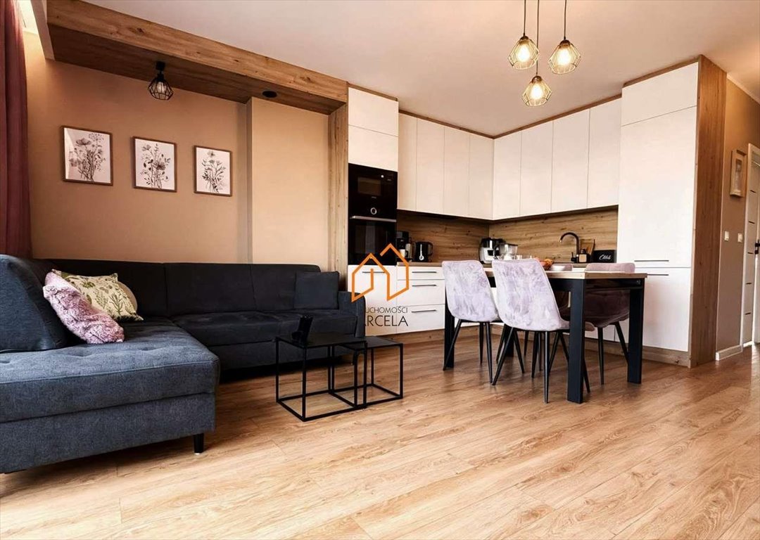komunikacja;salon z aneksem kuchennym (szafki w zabudowie, sprzęt AGD: lodówka, zmywarka, płyta indukcyjna, okap, piekarnik elektryczny, kuchenka mikrofalowa);łazienka (kabina prysznicowa, WC, umywalka);pokój (szafa w zabudowie);pokój.Budynek o nowoczesnej formie architektonicznej. Starannie zaprojektowany, wybudowany z materiałów najwyższej jakości.