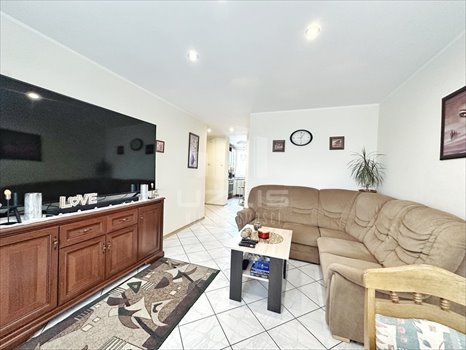 Lokal składa się z salonu z wyjściem na balkon, 2 sypialni, kuchni, łazienki, pomieszczenia gospodarczego (garderoby) i przedpokoju, dodatkowo do mieszkania przynależy piwnica. Mieszkanie w bardzo dobrym stanie, jasne i przestronne. W kuchni zabudowa meblowa, wraz ze sprzętem AGD, na podłodze płytki ceramiczne. W dwóch sypialniach na podłodze panele szwedzkie, w pozostałych pomieszczeniach płytki ceramiczne.