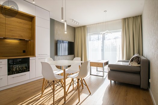 - Salon z aneksem kuchennym in wyjściem na balkon