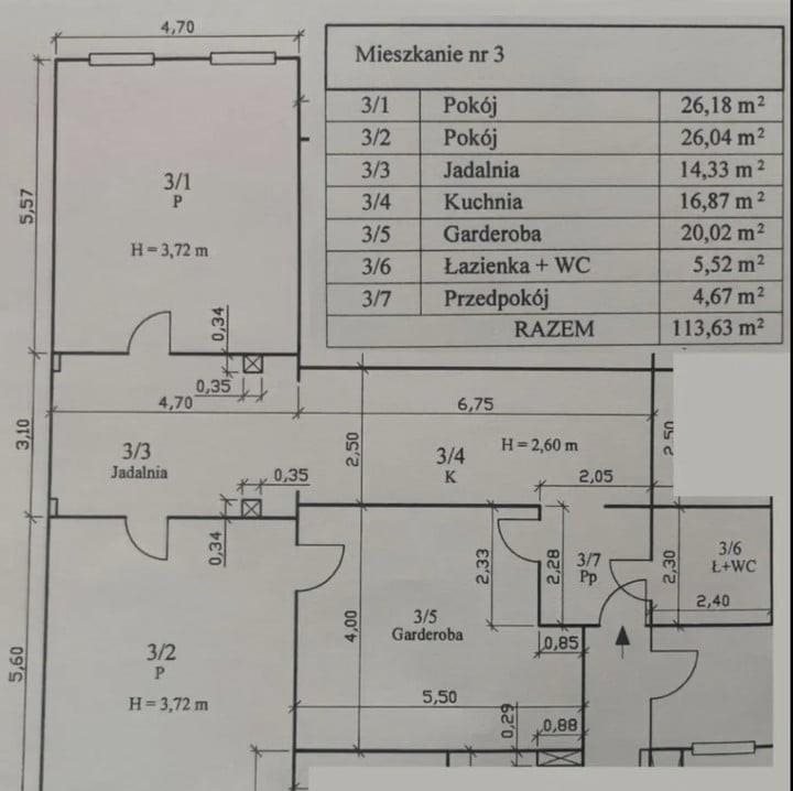 Mieszkanie jest bardzo oszczędne i przestronne. W dwóch pokojach sufit 3,5 metra wysokość.
