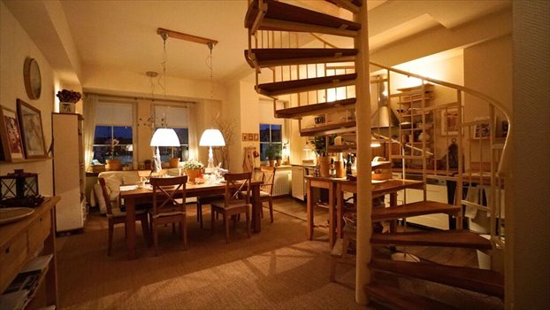 Mieszkanie jest położone w samym centrum Świnoujścia, na 3 piętrze kamienicy. Zajmuje dwa ostatnie piętra , co zapewnia całkowitą prywatność.