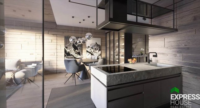Spójna architektonicznie wizja wnętrz to oczywiście górski charakter, ukazanie drewna w nieco nowoczesnym wydaniu. Na szczególną uwagę zasługuje lobby które z pewnością zaskakuje swoim klimatem z centralnie położonym akcentem na w green wall z wieloma roślinami. Części wspólne, klatki i ciągi komunikacyjne również zaprojektowano w podobnym klimacie. Nowoczesna forma i wysokiej jakości materiały wykończeniowe z pewnością pozostawią to miejsce modnym i przyjemnym jego mieszkańcom na długie lata.