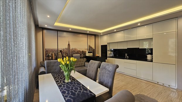 Wnętrze po generalnym remoncie, utrzymane w nowoczesnym stylu. Jasna zabudowa kuchenna, stonowane kolory, oświetlenie sufitowe LED oraz estetyczne wykończenie tworzą spójną i przytulną całość. Kuchnia jest w pełni zintegrowana z salonem, co dodatkowo potęguje poczucie przestrzeni.
