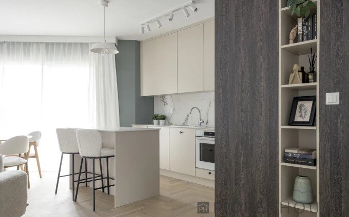 - przestronny salon z kuchnią i wyspą